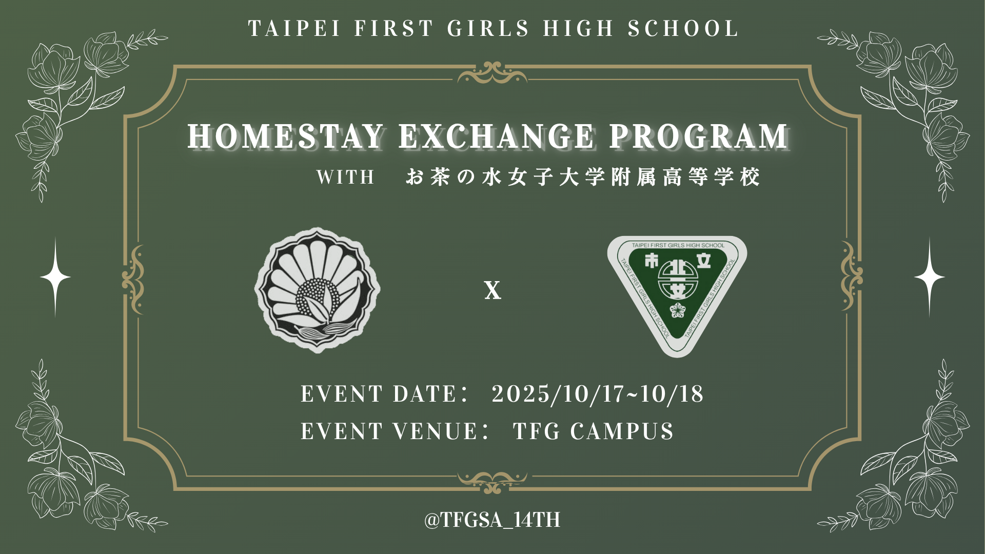 校園公告 公告主旨 本週五(10/17) 12:30 樂儀旗隊將於操場進行迎賓表演,歡迎師生共襄盛舉! 發佈日期 2025 年 10 月 15 日 發佈單位 社團活動組 公告類別 最新消息, 國際交流, 學生園地 公告等級 重要 點閱次數 1,496 公告內容 姊妹校日本御茶水女子大學附屬高中師生將於10月17日(五)及10月18日(六)蒞臨本校,進行為期兩天的交流活動。 本次交流活動內容豐富多元,預計包含校園導覽、兩校表演、午餐交流、獨立研究交流、社團體驗及接待家庭等。 為迎接日本師生,本校樂儀旗隊將於10月17日(五)中午12:30至12:40在操場進行迎賓表演。 敬邀全體師生屆時踴躍前往觀賞,展現本校熱情友善的校園文化,共同迎接遠道而來的貴賓!! 相關附件 【2025-10-16】公告「115年第一次專門職業及技術人員高等考試醫師牙醫師中醫師 ... 【2025-10-15】中國文化大學承辦「文化部文化資產局_文化資產教師增能線上研習 ...