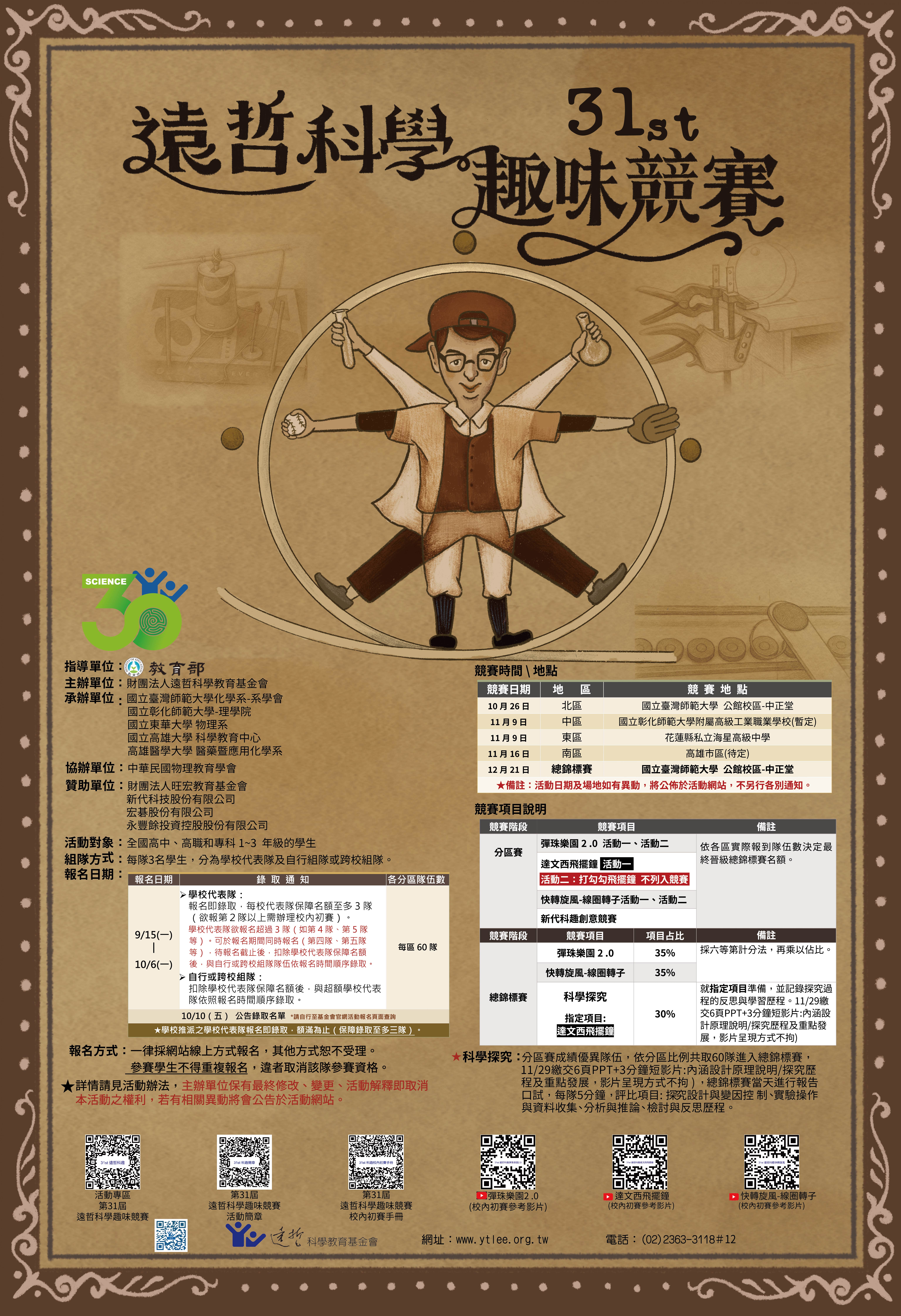 | 公告主旨 | 第31屆遠哲科學趣味競賽 |
