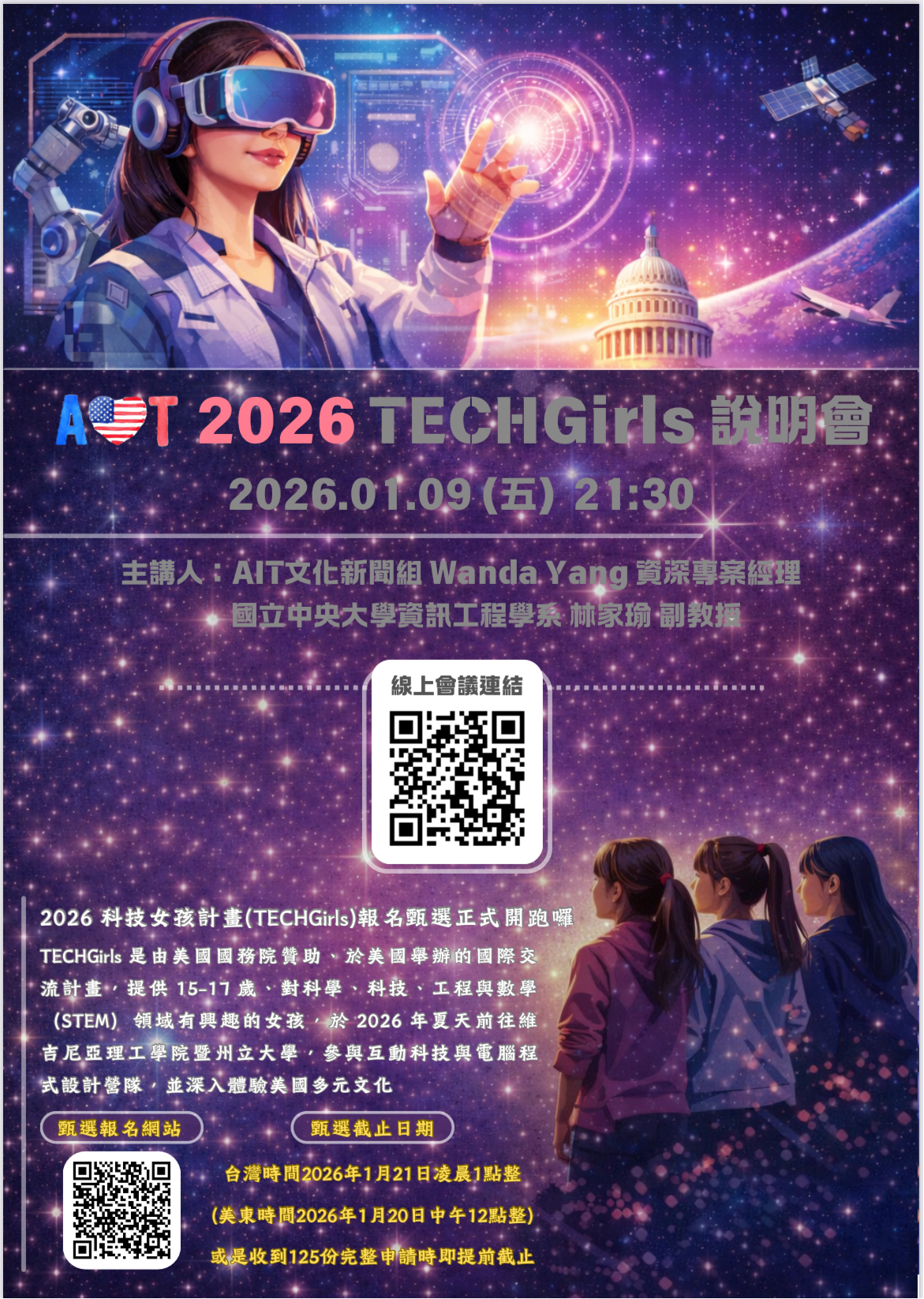 | 公告主旨 | 美國在台協會「2026科技女孩計畫」(更新:1月9日有線上說明會) |